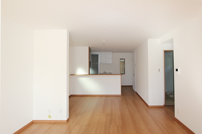 オフ・ホワイトと白木が基調のLDK。